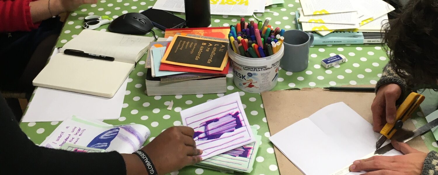 We will make postcards with drawings and collages, which will be printed using risography at Studio Nona. You can take what you make home with you, and we encourage you to share your thoughts with family and friends.
