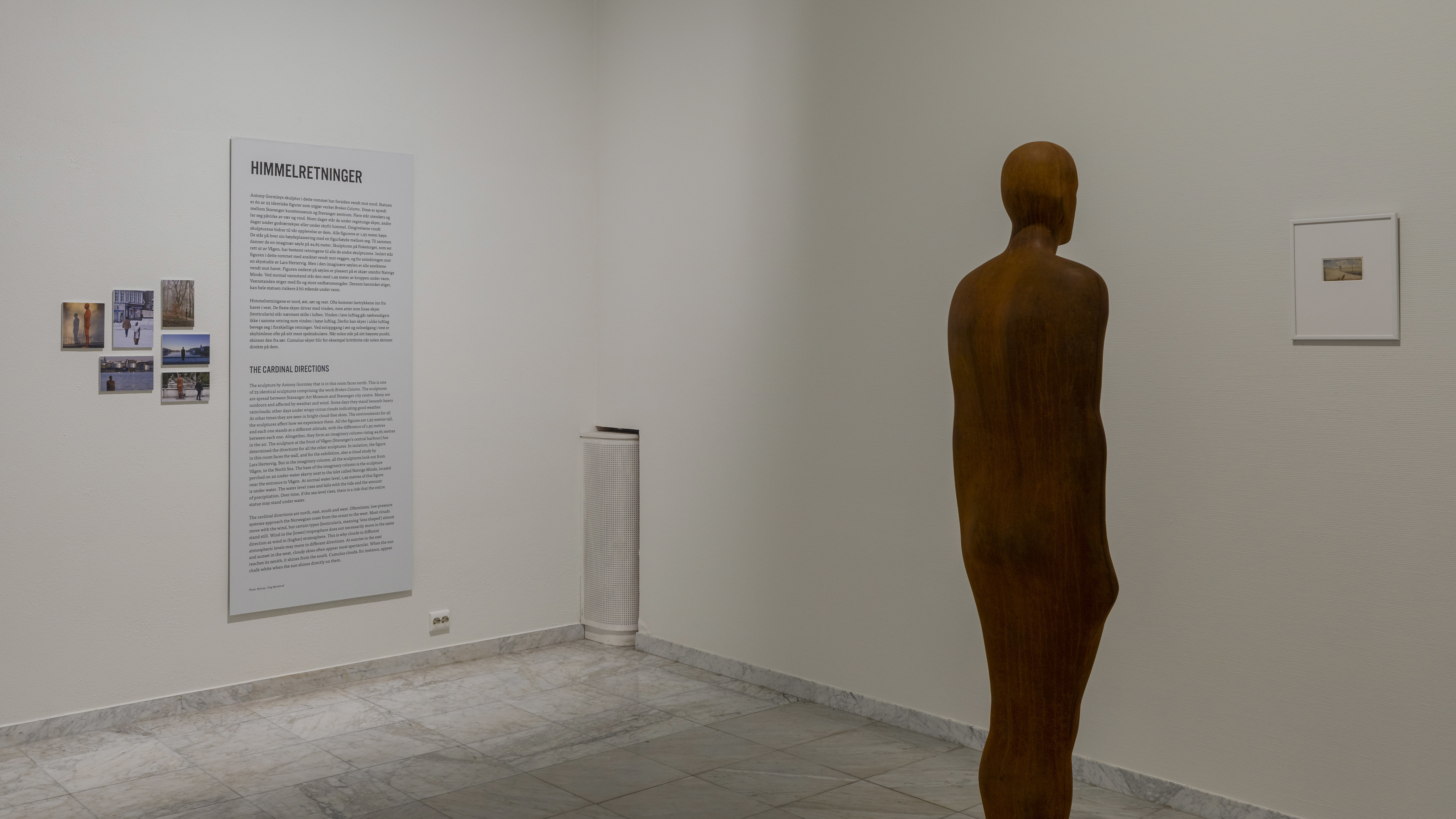 Antony Gormley's (f.1950) 'Broken Column' fra 2003 (Brutt søyle) er Stavanger kunstmuseums mest omfattende skulptur. Verket består av 23 identiske rustne stålskulpturer, som er plassert ute og inne - på offentlige, semi-offentlige og private steder i byen. De 1,95 meter høye skulpturene er basert på en avstøpning av kunstnerens egen kropp. De er forbundet med hverandre ut fra høyde over havet og himmelretning. Skulpturen på Fisketorget, som ser ut av Vågen, 8 grader vestover fra nord, bestemmer retningen til de andre skulpturene. Tanken er at alle skulpturene ser mot havet. Skulpturene står på bestemte koter slik at de til sammen danner en tenkt søyle. Øverst på søylen er skulpturen inne i Stavanger kunstmuseum. Den står i et eget hvitt gallerirom, som ligger 41,41 meter over havet. Den neste skulpturen befinner seg i Mosvannsparken på Eiganessiden, og den står én kroppshøyde lavere, det vil si 39,46 meter over havet. Med intervaller på 1,95 meter over havet fortsetter plasseringene ned mot sentrum, til Vågen og ut i sjøen til den aller siste skulpturen, som står med 1,49 meter under vann, rett utenfor et skjær ved Natvigs Minde. Kunstneren beskriver ideen slik: «De er fortrengte ryggvirvler fra en tenkt søyle, hvor hodet til den ene kobler seg til foten til den andre».