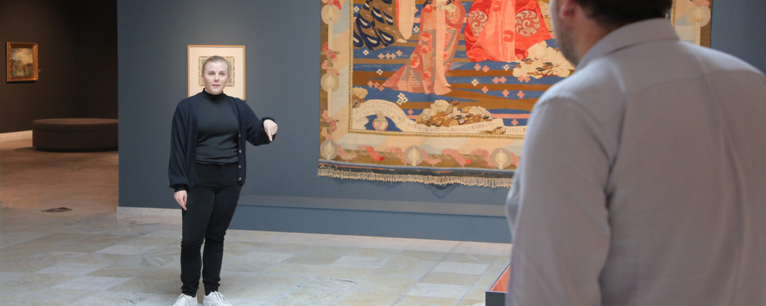 Ved å klikke på lenken over får du tilgang til en 360-graders film fra Stavanger kunstmuseums Frida Hansen-utstilling. Du vil møte museumspedagog Katharina Ueland som snakker om kunstverkene, og du vil få tilgang til høyoppløselige bilder av verkene, samt museets innholdsrike database. Varmt velkommen til en rik digital kunstopplevelse.